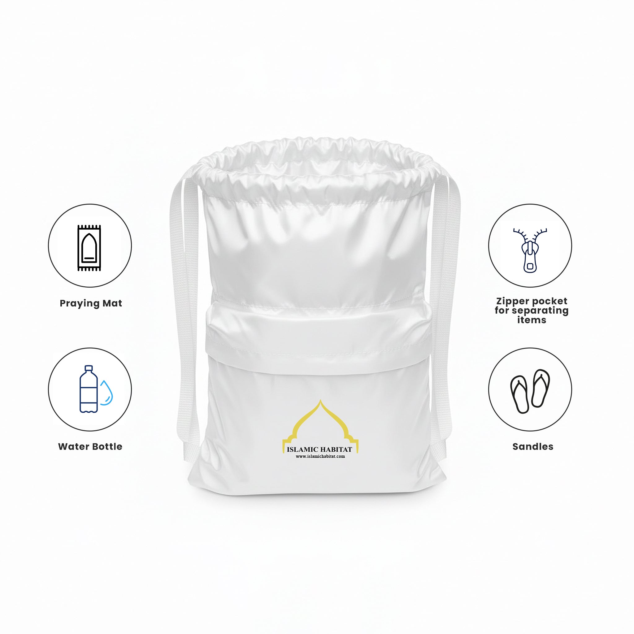 Ideal for use in Masjid al-Haram, Masjid an-Nabawi, and local mosques, this bag is lightweight, compact, and easy to carry throughout your pilgrimage.